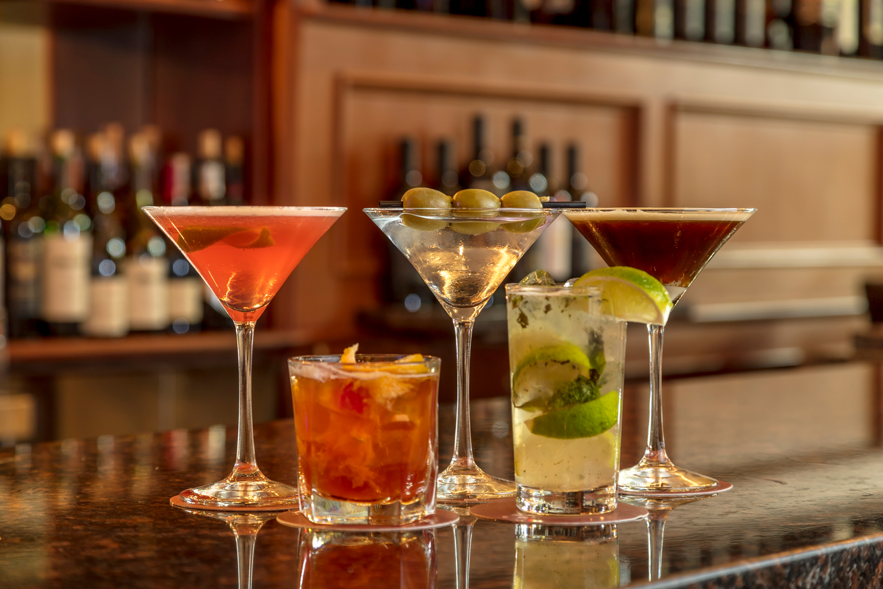 Twenty-Sevens, an elevated hotel lobby lounge within the Park Central Hotel New York, offers a versatile experience for guests to indulge in bites and specialty cocktails