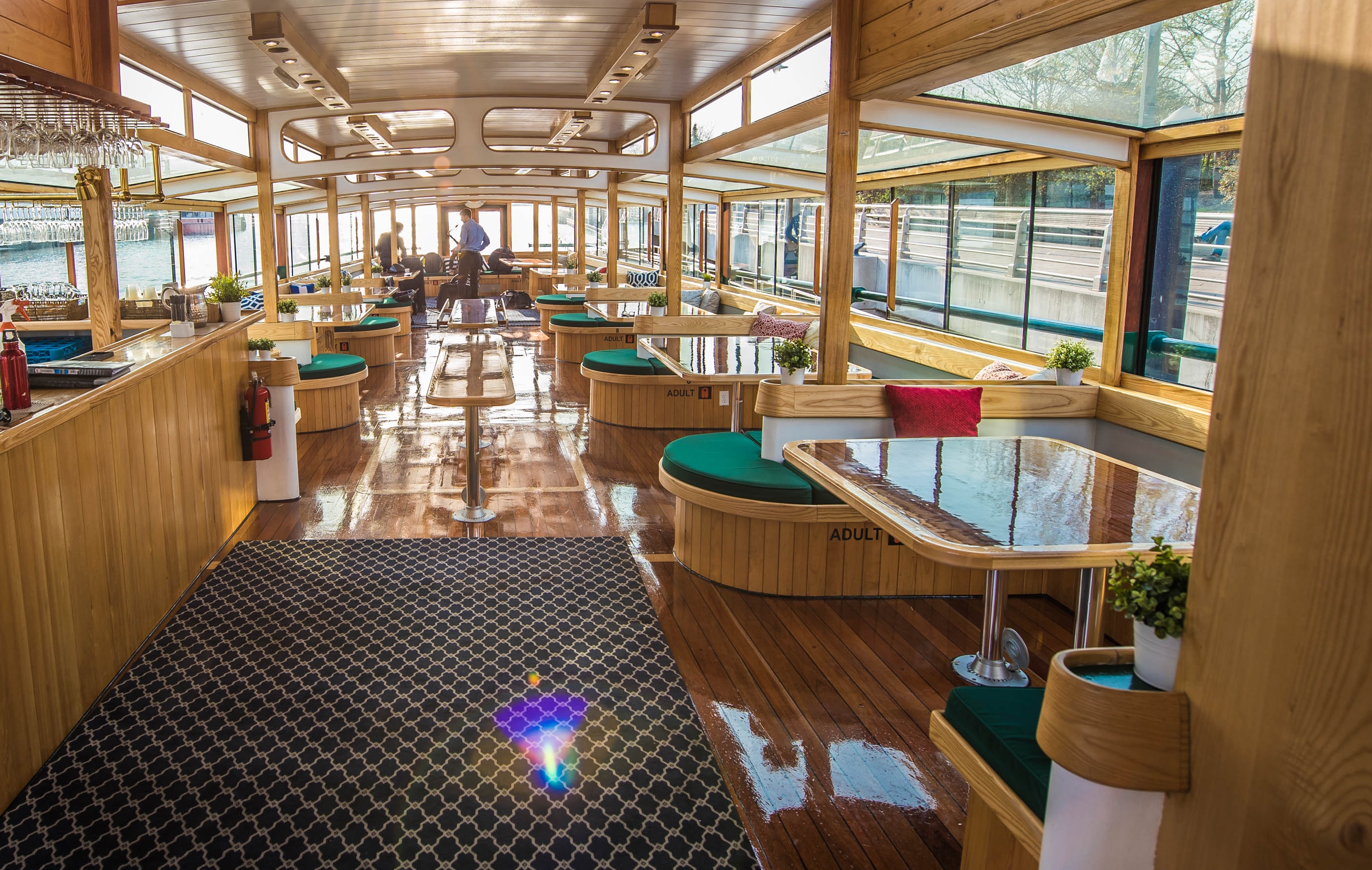 Tribeca Rooftop offers a sophisticated and contemporary atmosphere complemented by stunning panoramic views of the cityscape and riverside.