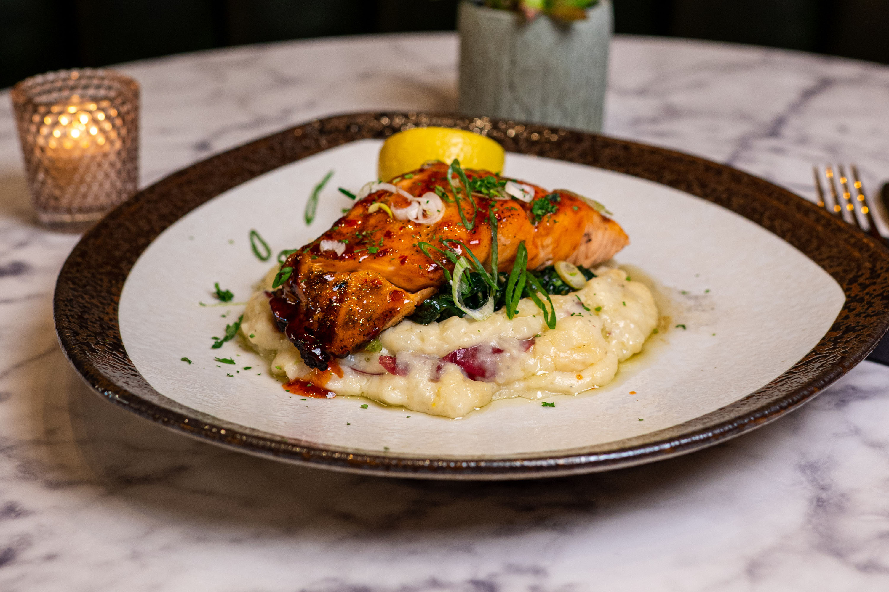 Amuse Marketplace & Bar offers creative cocktails and a seasonal menu in a contemporary setting inspired by nature.