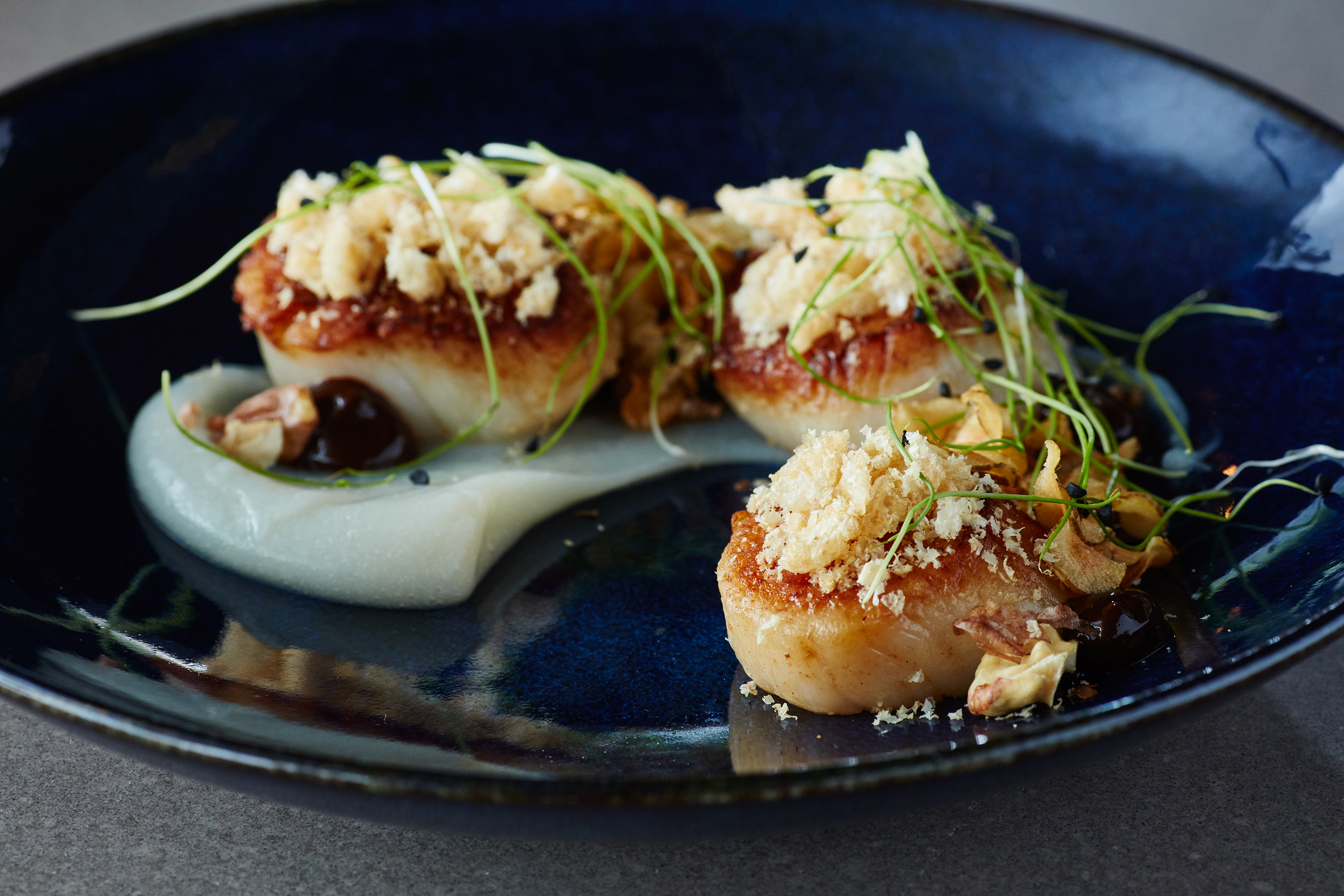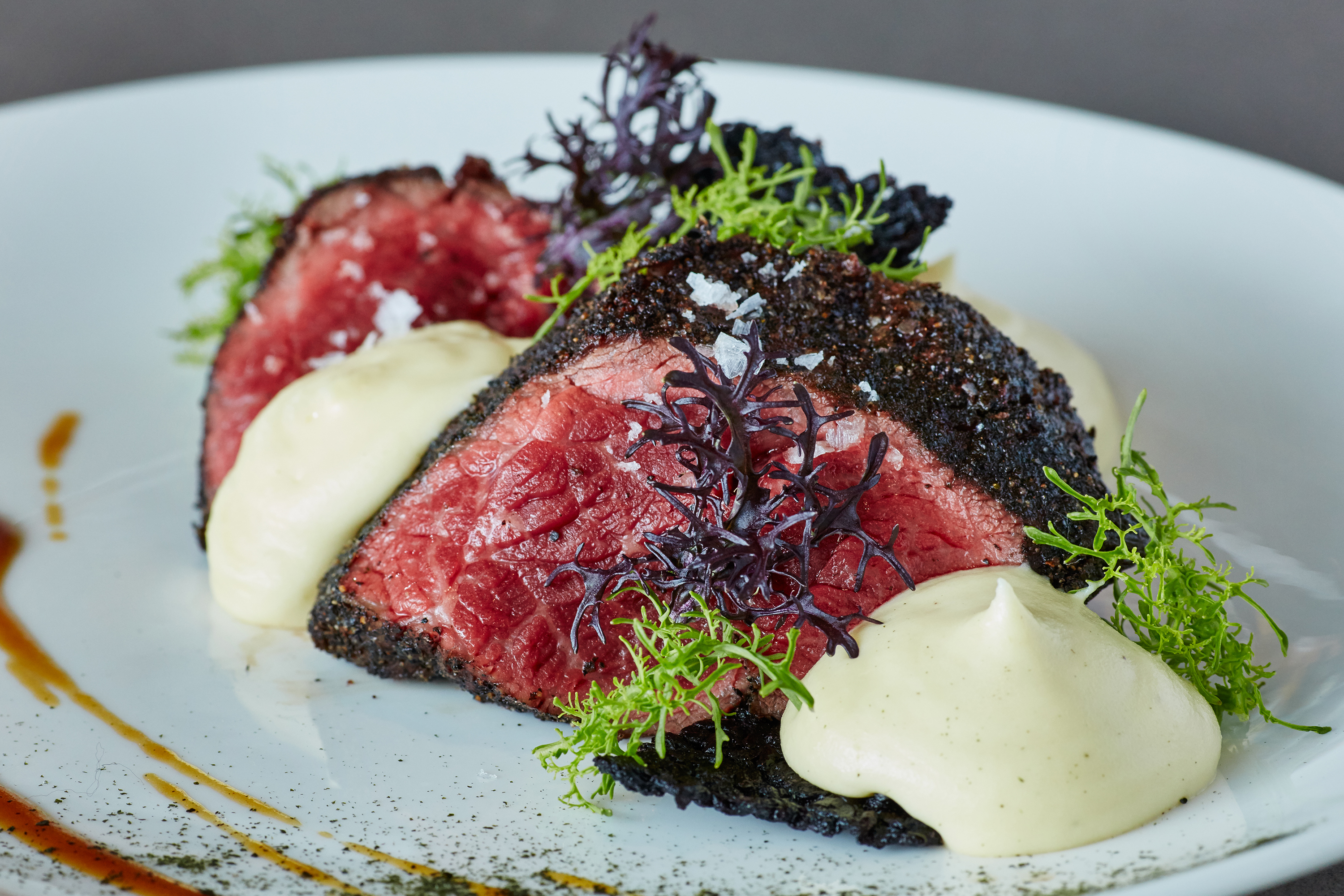 Kyu’s signature dishes include smoked wagyu beef brisket, whole-roasted cauliflower with goat cheese and shishito herb vinaigrette, and its coveted multi-layered coconut cake.